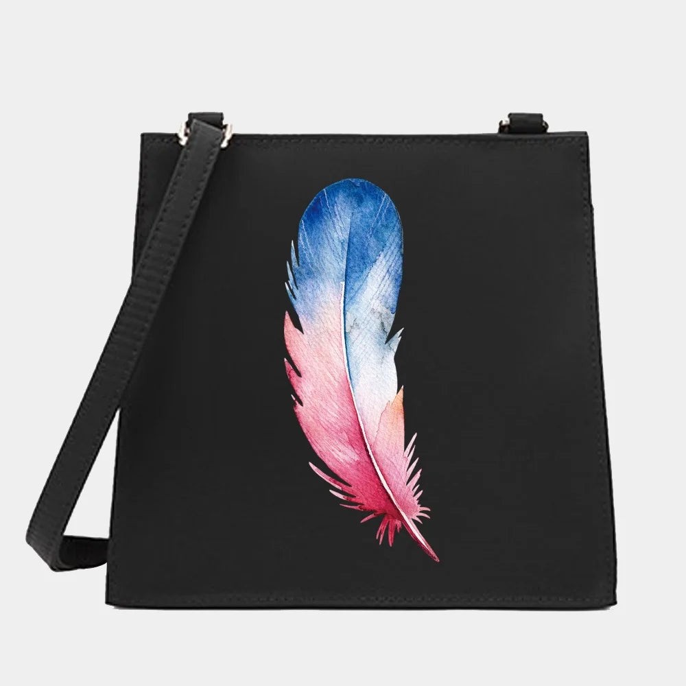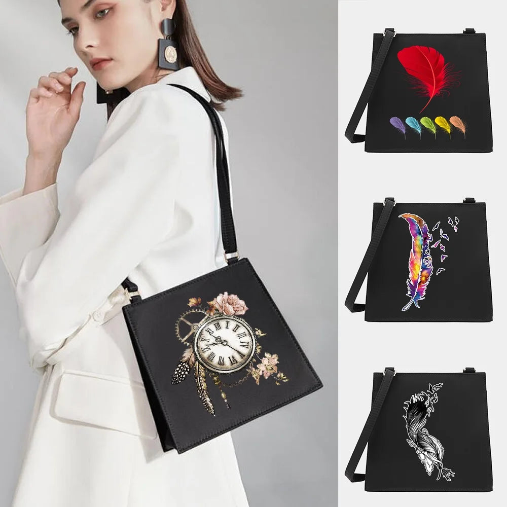 Women Square Bags Shoulder Crossbody Feather Pattern Casual Tote Messenger Bag
