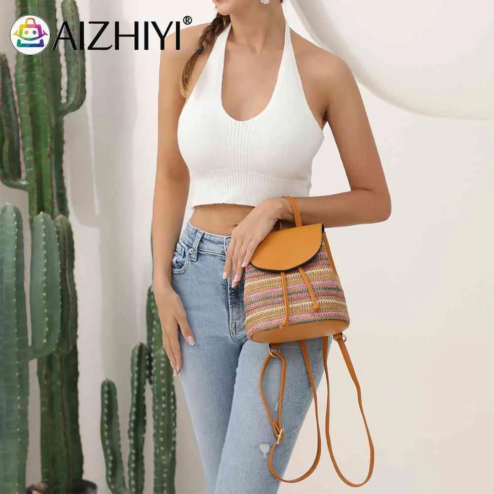 This women's backpack features a boho ethnic design with straw embroidery, making it perfect for spring and summer outings. It's ideal for the beach, school, holidays, and everyday use.