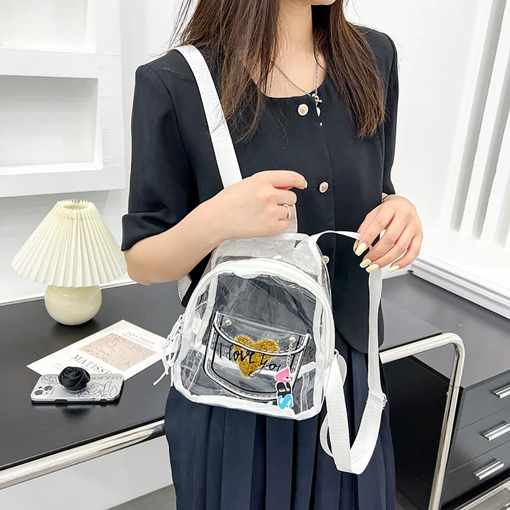 - Stylish transparent backpack with letter love print design
