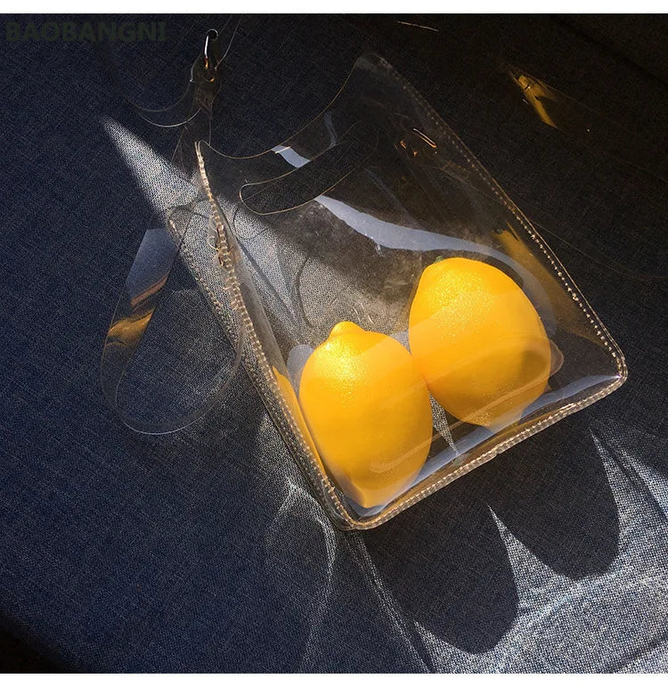 Stand out with this unique transparent handbag that is perfect for the beach, shopping, or everyday use. The jelly tote design adds a stylish touch to your outfit.