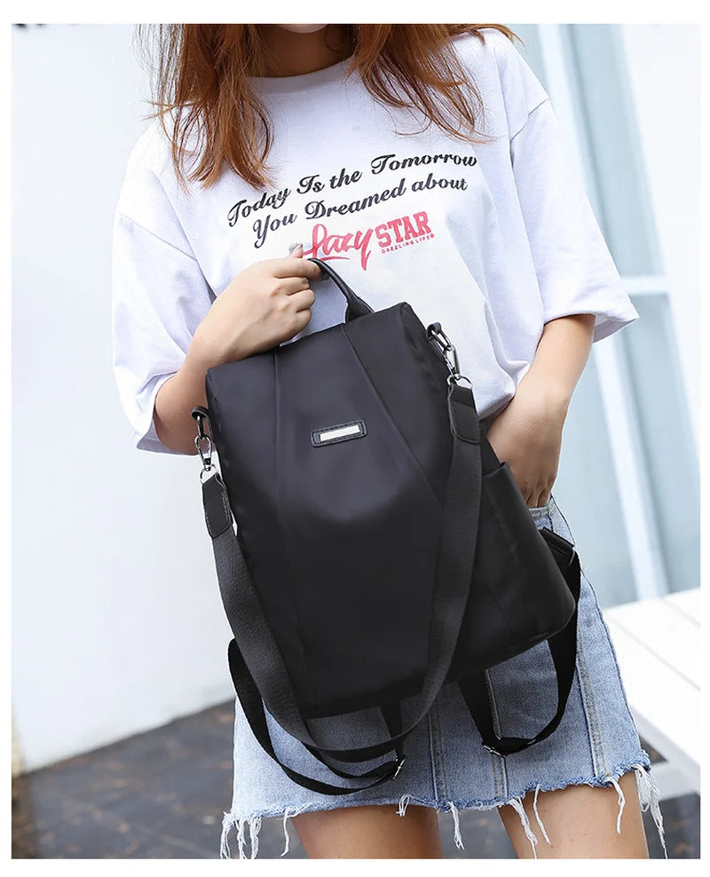 This stylish and practical backpack is made of waterproof Oxford cloth, perfect for travel, school, and everyday use. It features a large capacity with anti-theft design, making it ideal for teenage girls and women.