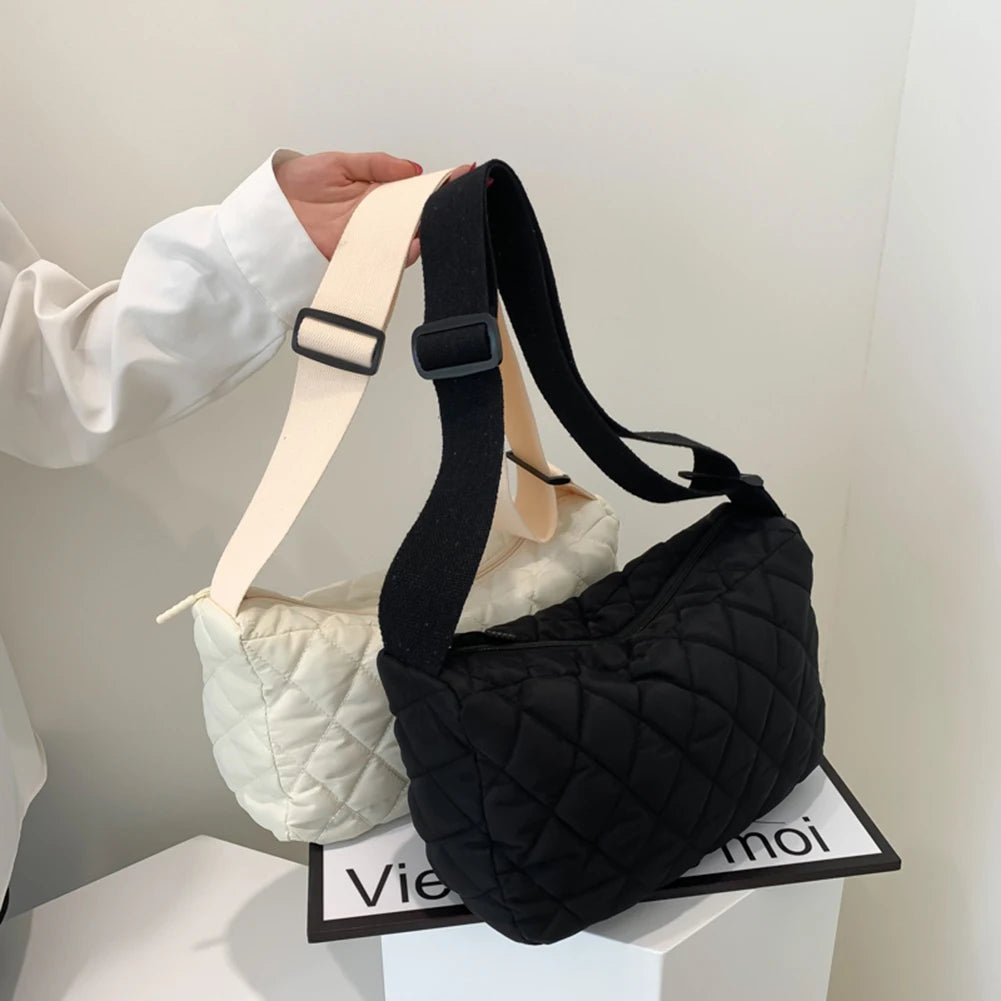Stay stylish and warm with this padded quilted shoulder bag featuring a space pad cotton design. Perfect for winter!