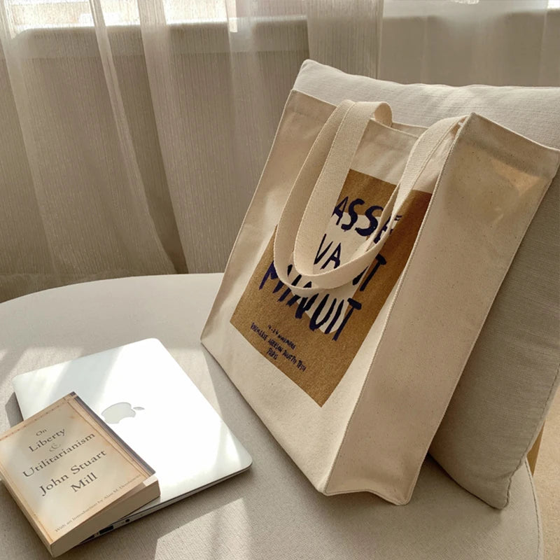 This eco-friendly women's canvas shopper bag is made of high-quality cotton, providing a stylish and sustainable option for shopping and daily use.