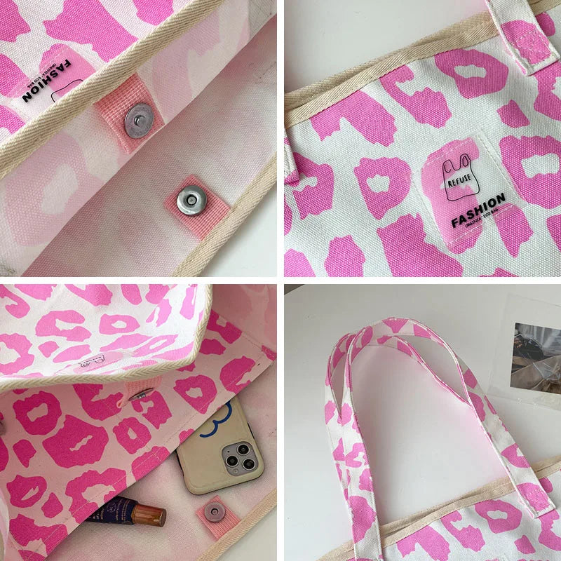 Stay stylish and organized with this canvas shoulder bag. Featuring a retro design, this large tote is perfect for casual outings. It has a leopard print and an inner pocket for added convenience.