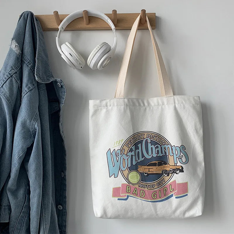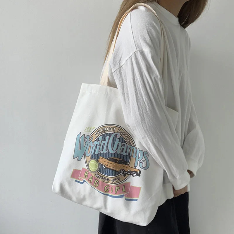 This canvas shoulder bag is perfect for women and students. It's a reusable shopping bag made of cotton cloth, ideal for everyday use.