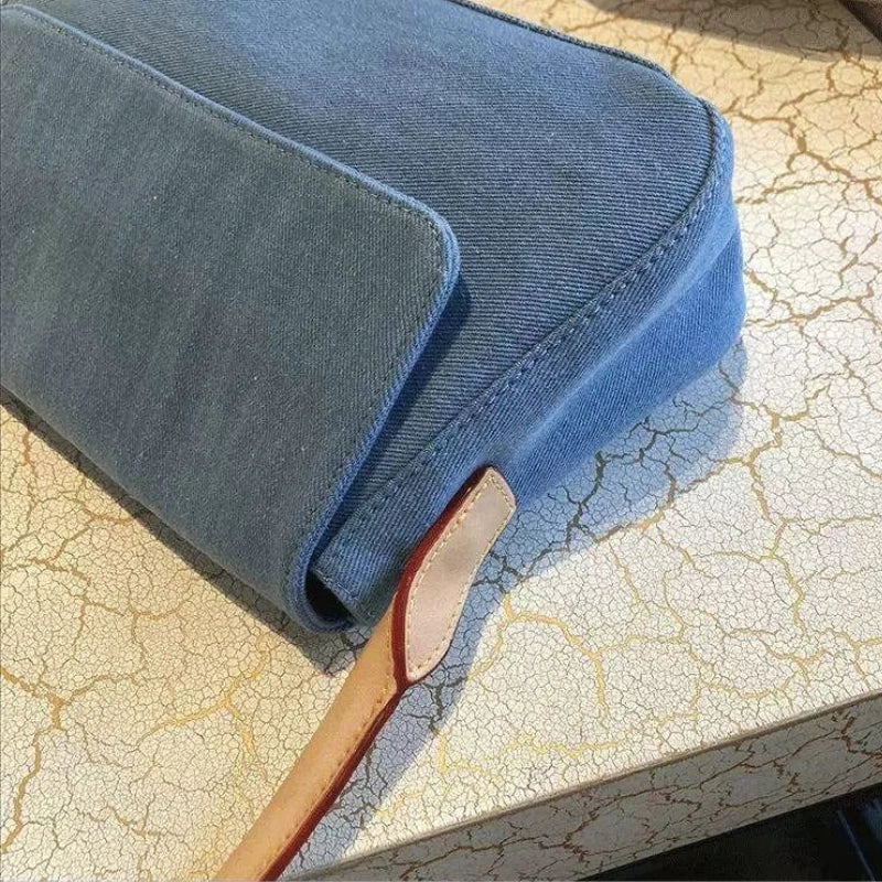 Stay stylish with this high cross-body denim shoulder bag featuring underarm flaps. Perfect for a retro look that will elevate any outfit.