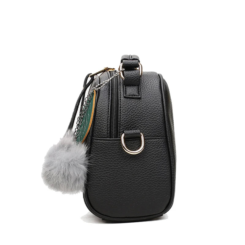 Women's Hairball Crossbody Bag PU Leather Messenger Bag