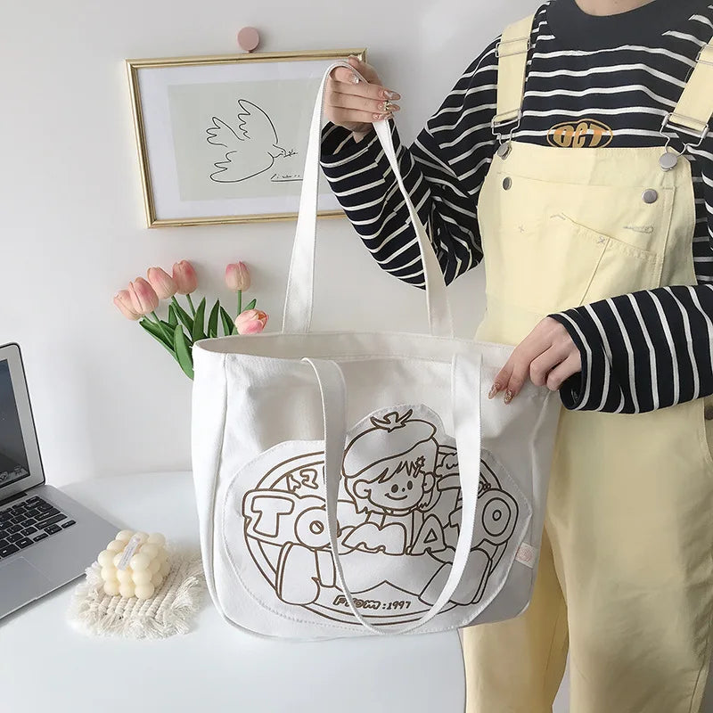 This single shoulder bag is perfect for girls and ladies, ideal for shopping and daily use. Made of canvas, it is durable and reusable.