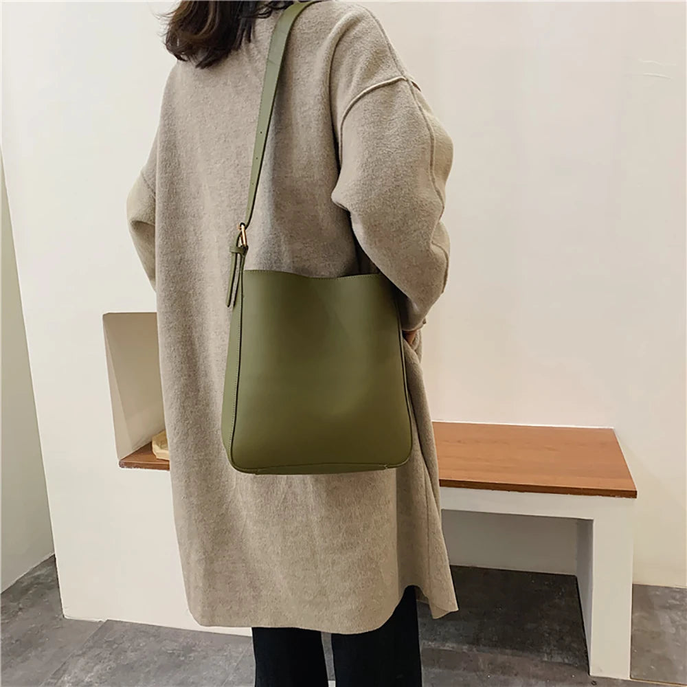 Women's Large Capacity PU Leather Shoulder Bag Bucket Leisure Travel Handbags