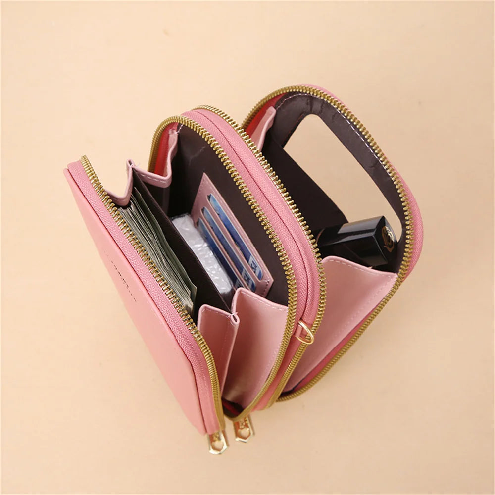 Women's Leather Shoulder Bag with Touch Screen Cell Phone Purse