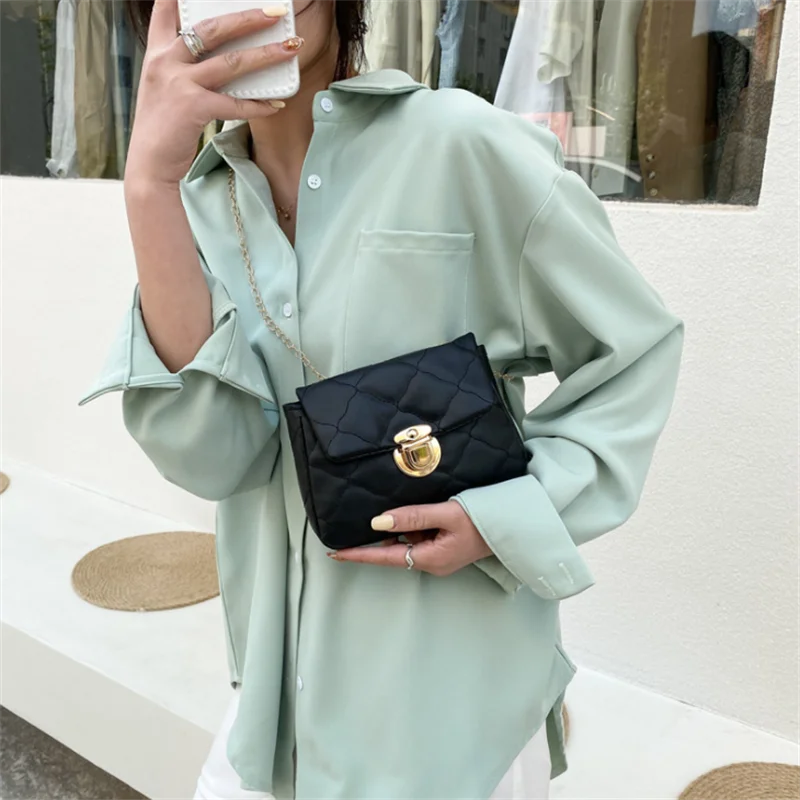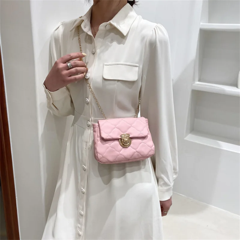 This women's leisure bag features a stylish Lingge chain design, made of high-quality PU leather, perfect for casual wear.