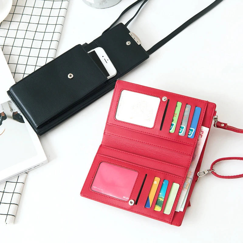 Women's Long Wallet and Shoulder Bag with Card Holder and Phone Pocket