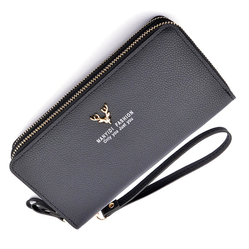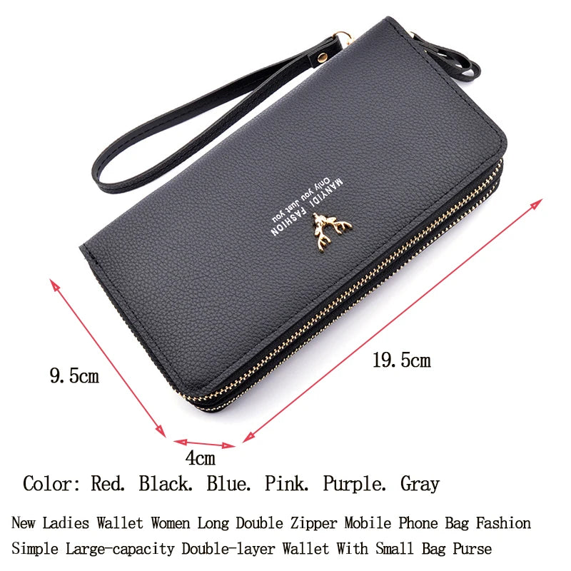 This women's wallet features a double zipper design with a large-capacity double-layer and a small bag purse. Keep your essentials organized and secure.