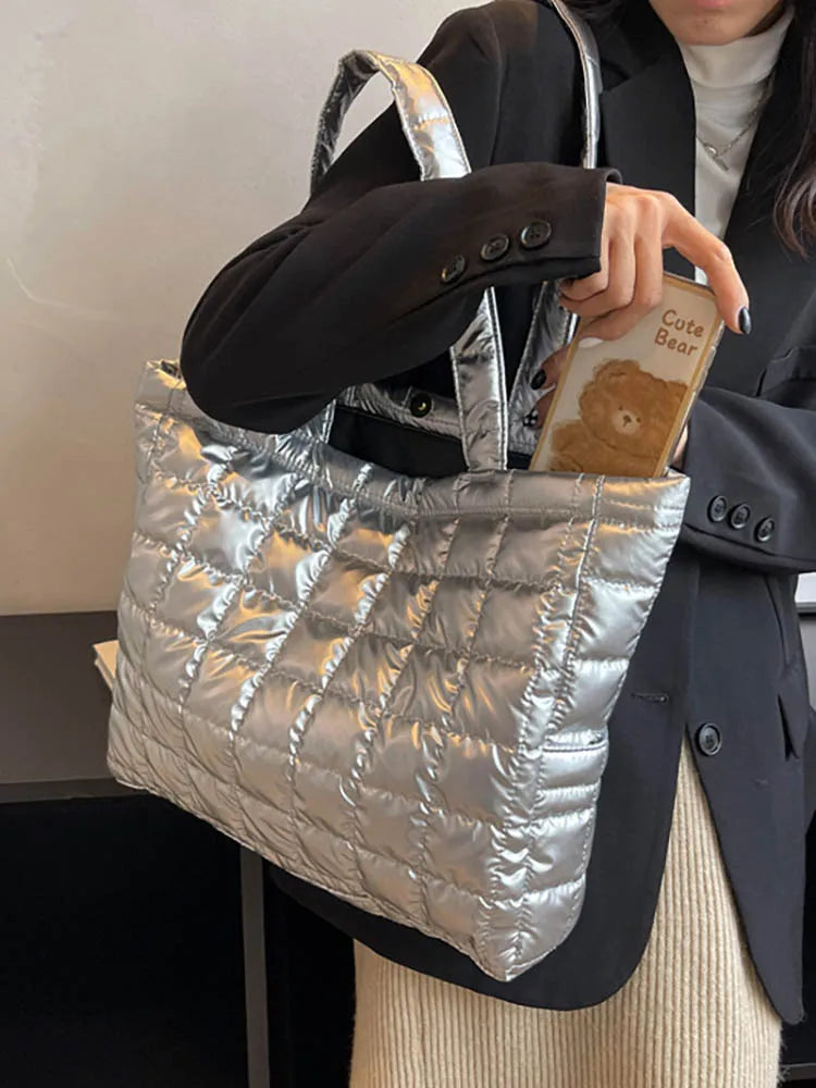 Stay warm and stylish with this down cotton padded shoulder bag, perfect for commuting or shopping. Made of durable nylon material with a spacious interior to hold all your essentials.
