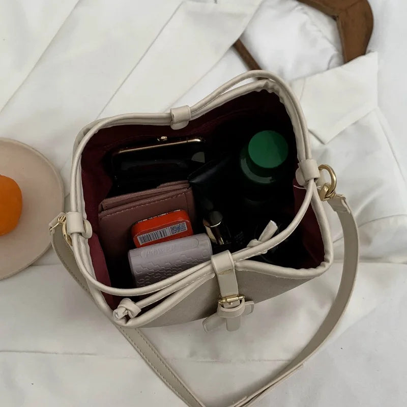 - Small bucket style with crossbody strap