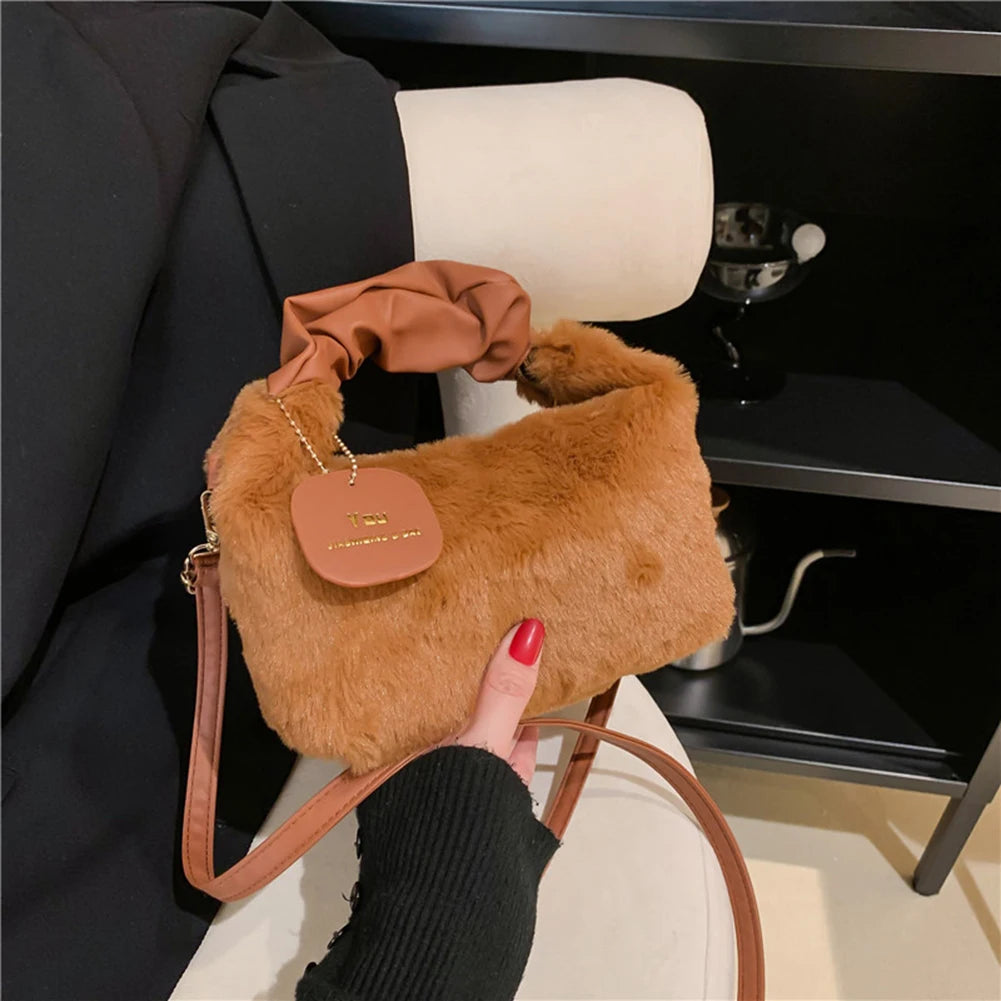 Women's Plush Handbags PU Strap Cloud Bags Handbag Winter Ladies Messenger Bag