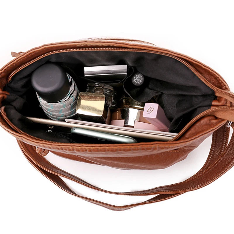 Women's PU Leather Crossbody Bag Casual Shoulder Handbag Multi-layer Bolso
