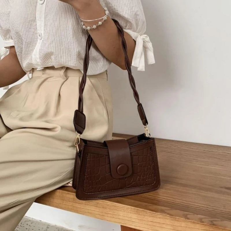 This stylish shoulder bag is made of high-quality PU leather, perfect for shopping or casual outings. It features retro embossed details and a convenient sling design.