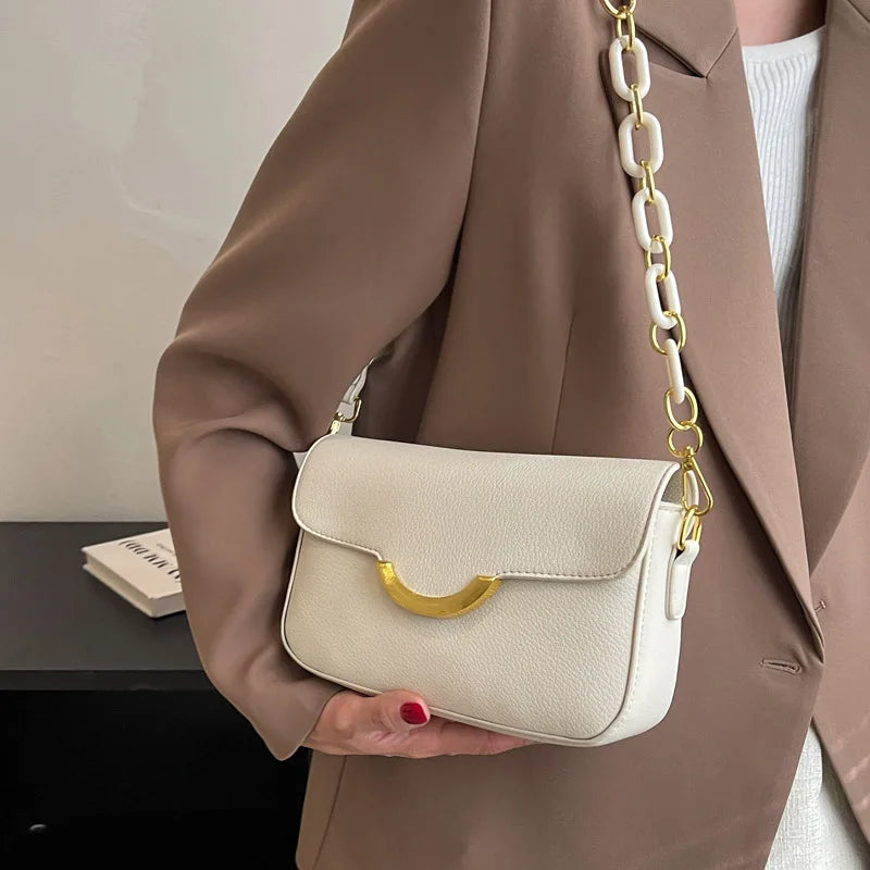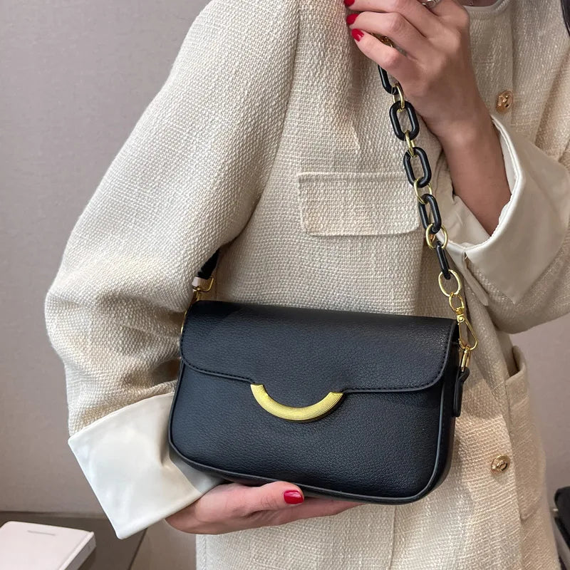Elevate your style with this fashionable PU leather shoulder bag designed for the spring and summer seasons. This bag features a flap closure and is the perfect accessory for any outfit.
