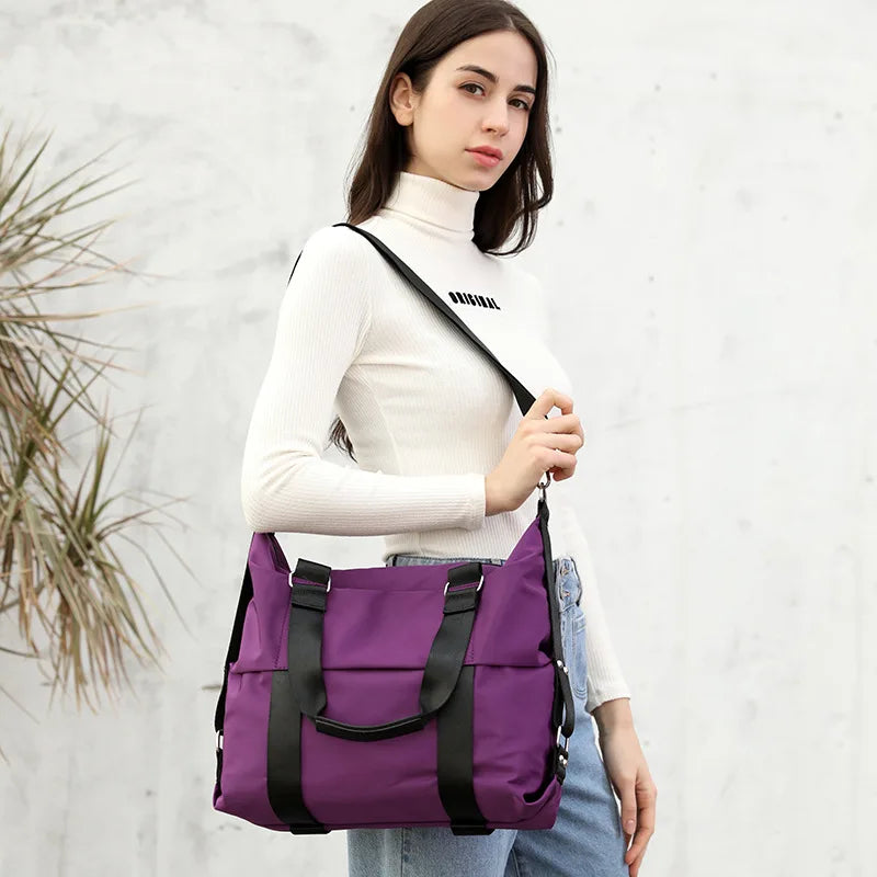 This women's shoulder bag is designed with a large capacity to easily carry all your essentials. Made of durable nylon material, it features multiple compartments for organized storage. Perfect for everyday use and travel.