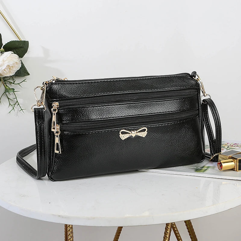 This oil wax leather shoulder bag is designed for middle-aged women. It features a multi-layer design for easy organization and a large-capacity for all your essentials.
