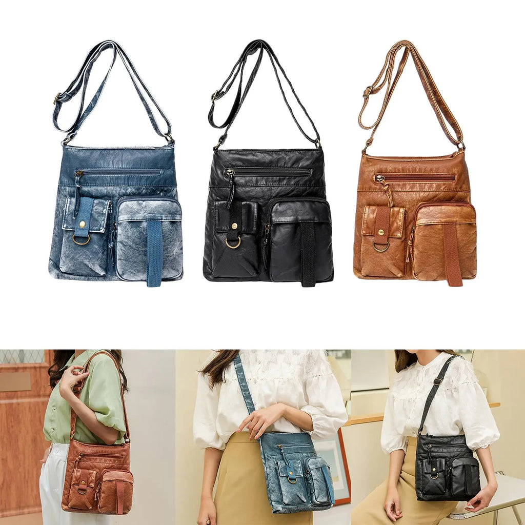 Women's Soft PU Leather Shoulder Bag with Adjustable Strap and Pockets