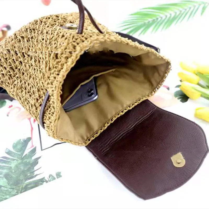 This stylish backpack handbag is perfect for spring and summer adventures. Crafted from high-quality leather, it features a woven solid design that exudes a sense of leisure and sophistication.