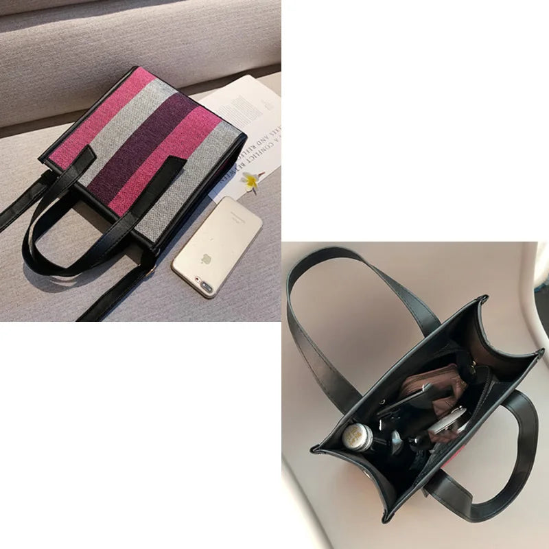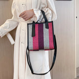 Women's Striped Canvas Shoulder Bag Fashionable Casual Totes