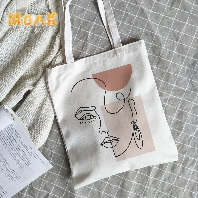 Women's Ulzzang Ins Shoulder Bag Canvas Abstract Art Face Handbags Tote Bag