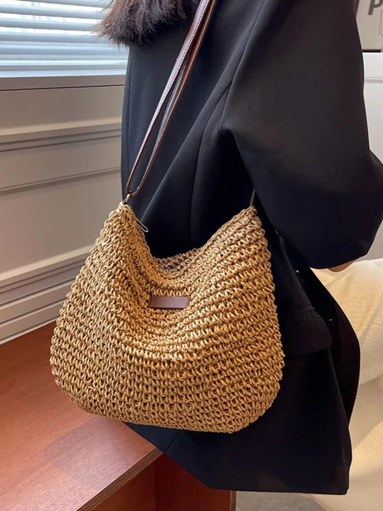 Stay stylish with this women's weaving beach bag that offers a large capacity for all your essentials. Can be worn as a shoulder or crossbody bag, perfect for everyday use.