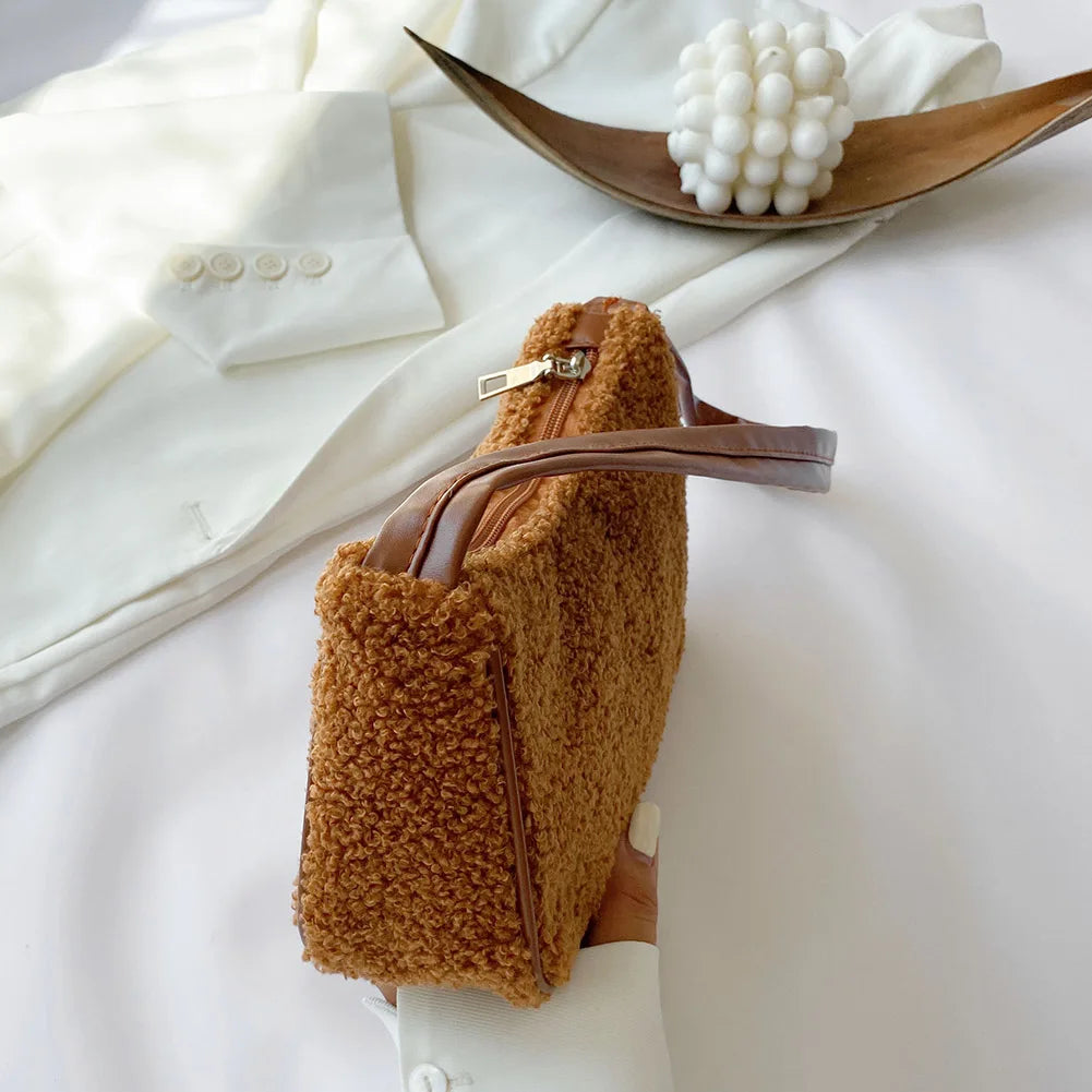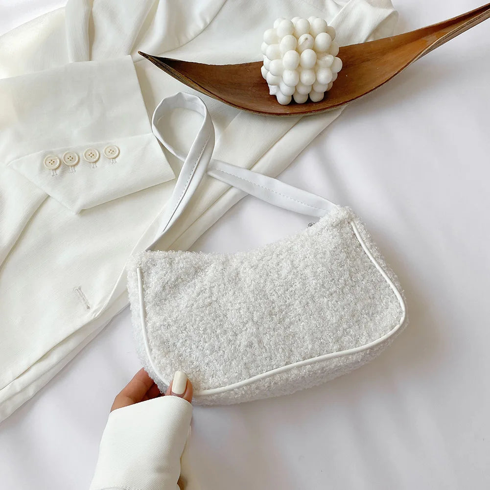 Woolen Handbag Totes Women Solid Underarm Shoulder Bags
