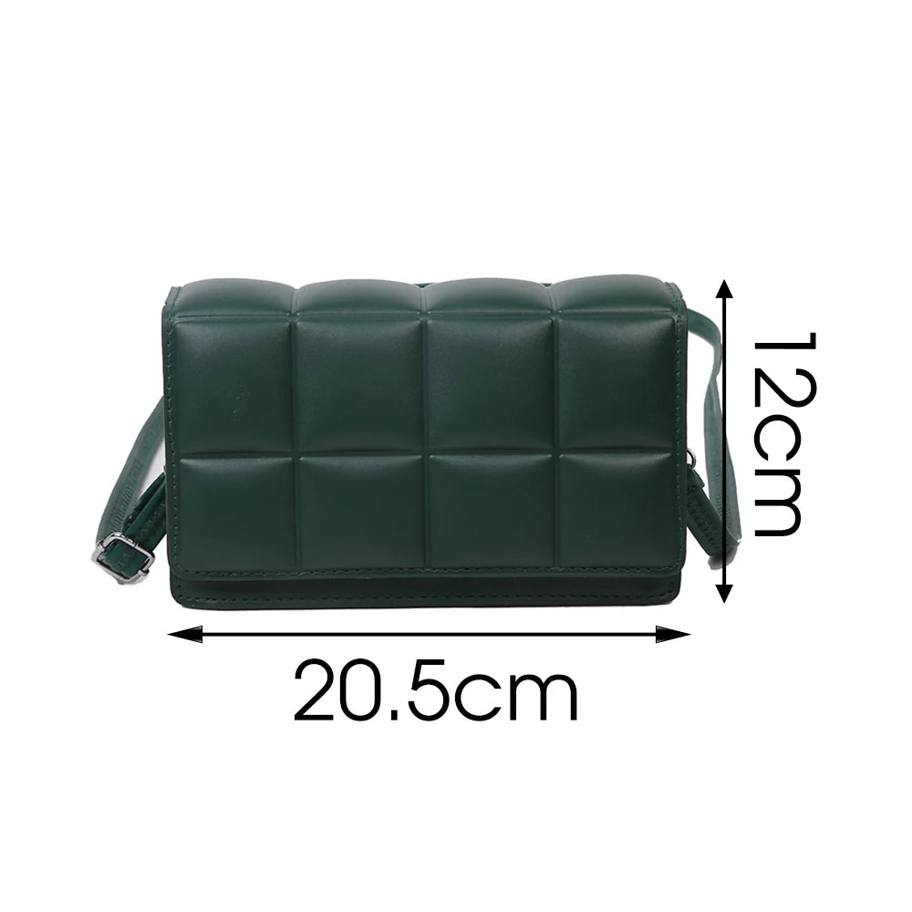 This stylish shoulder bag is made of high-quality PU leather. It features a woven flap design and comes with a chain strap. Perfect for carrying everyday essentials.