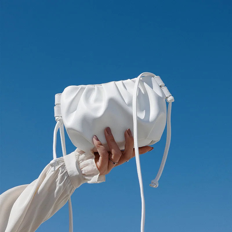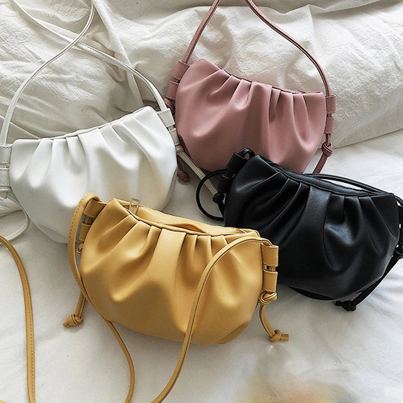 Yellow/Pink Leather Cloudy Bag Ruched Women Shoulder Handbags