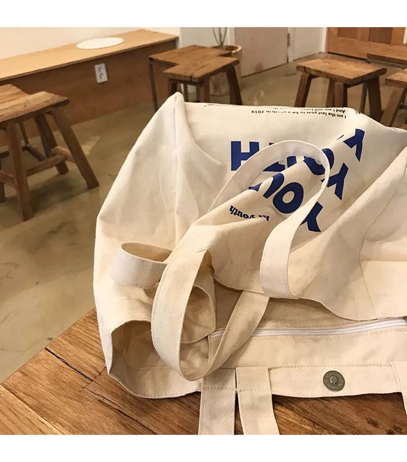 YOUTH Letters Print Women Canvas Shopping Bag Cotton Cloth Shoulder Bag