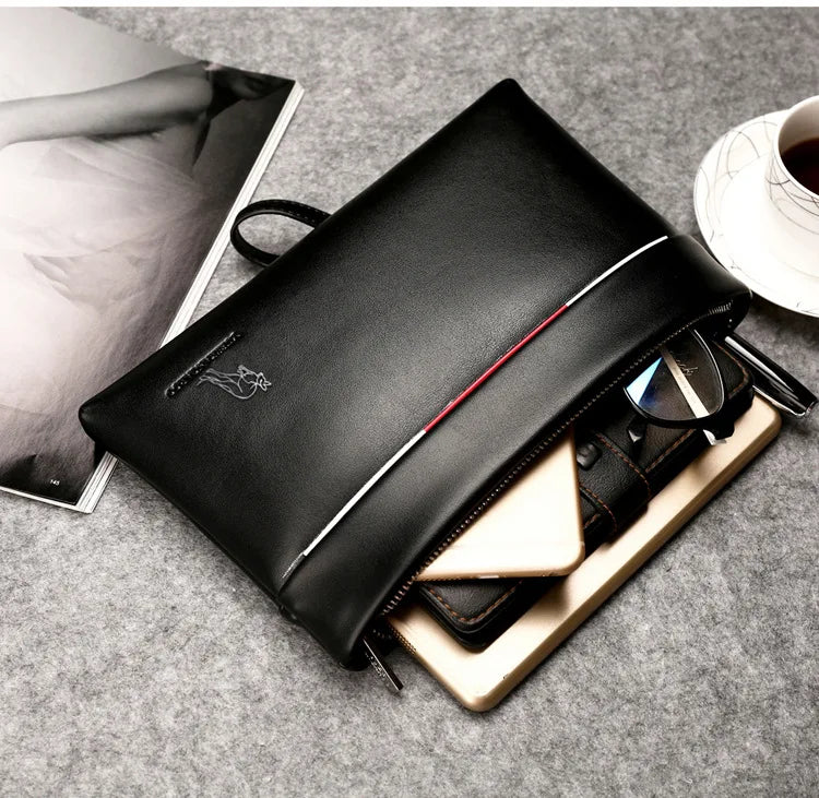 This men's clutch bag is made of soft leather and has a large capacity for all your business needs. It features an envelope design for a stylish look.