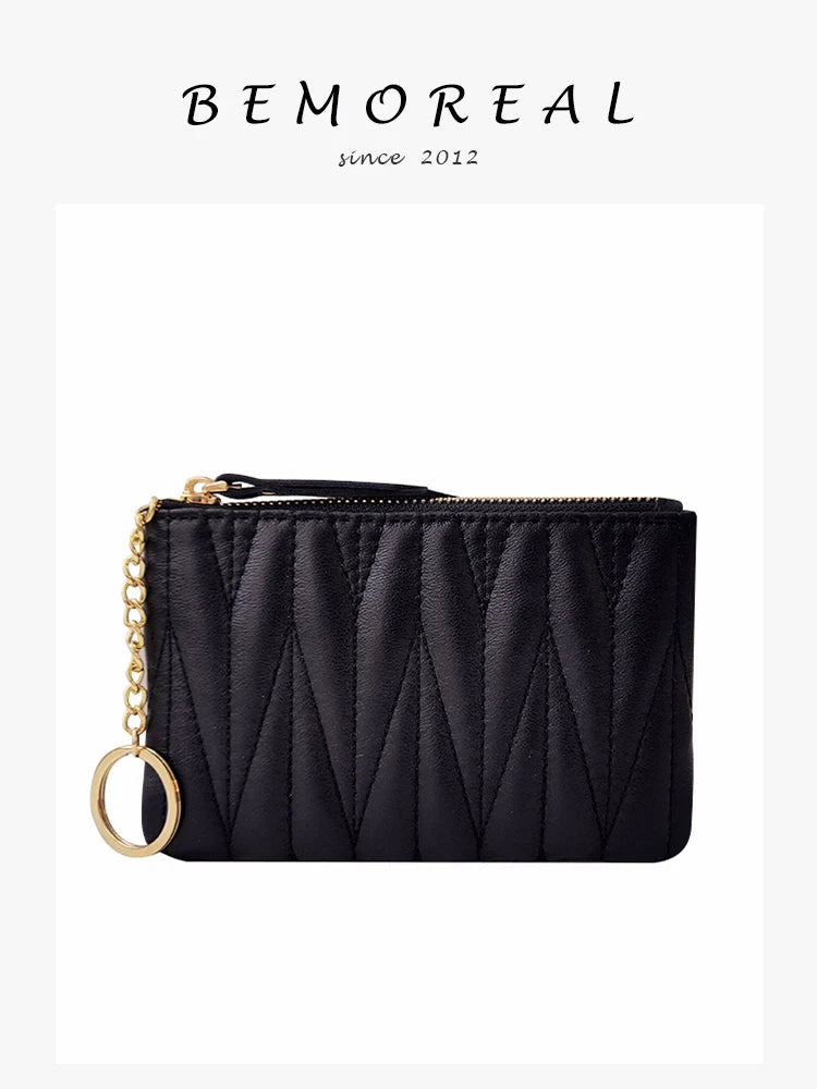 Stay organized with this stylish wallet that features a zipper closure and key ring. Made of high-quality sheepskin, this wallet is perfect for storing your money and essentials.